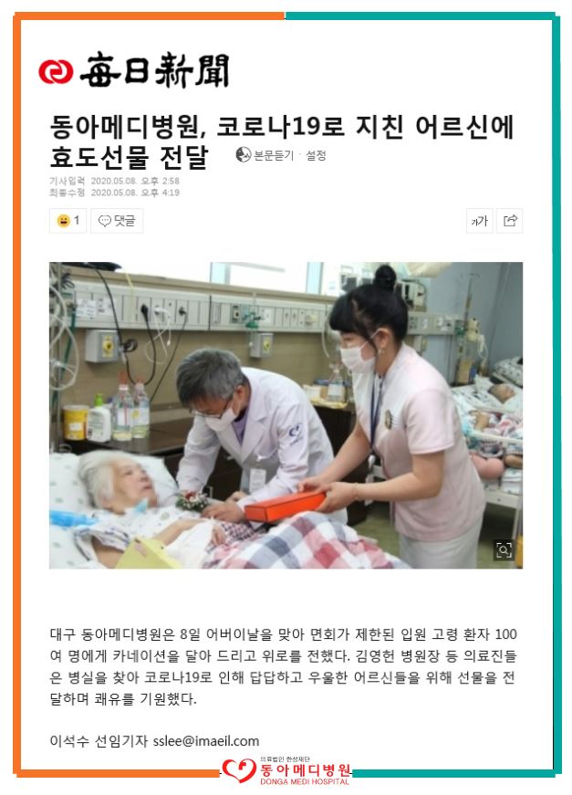 동아메디병원-코로나19로 지친 어르신에 효도선물 전달(20.05.08)
