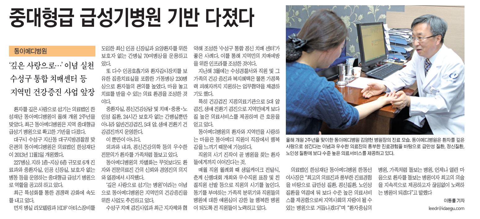 - 대구일보 동아메디병원 개원3주년 기념식 보도자료
